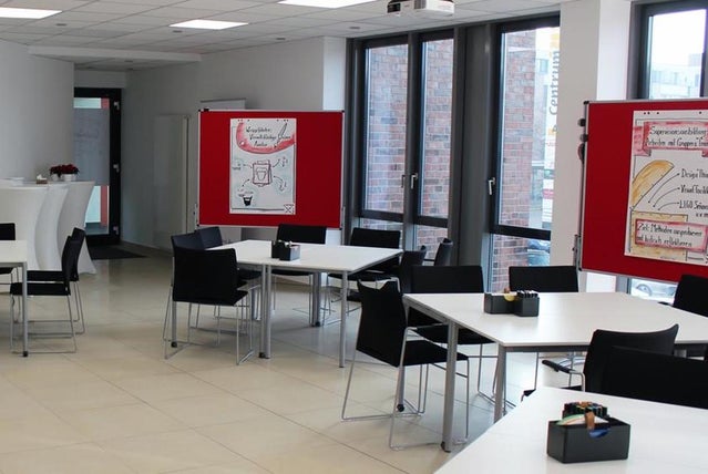 The CreativeSpace in the heart of Fellbach next to Stuttgart offers a space für creative and agil working. Our philosophy: The space adapts to the people and their needs, not vice versa. Therefore the whole equipment is mobile and flexible in usage. The space is redesigned in only a few moments. You will find perfect equipment for visual and communicative work.
