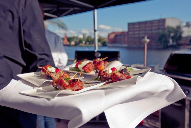 . In dieser Location treffen historisches Backsteinmauerwerk auf moderne Technik und hochwertiges Mobiliar. Die Location verfügt über eine große Terrasse, die den direkten Blick auf die berühmte Oberbaumbrücke freigibt.