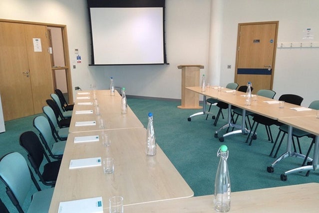 The Joule Suite offers a thoughtful blend of functionality and comfort that works particularly well for our corporate clients. We've arranged the space with light wood tables and ergonomic seating that keeps everyone engaged throughout long strategy sessions or training workshops. The room's adaptability is one of its strongest features, transforming from an intimate U-shaped setup for 20 participants to theatre-style seating for 60 delegates. Our projection screen dominates the front wall, paired with a professional podium that gives speakers a commanding presence. We've found this combination works brilliantly for everything from technical presentations to team briefings. The lighting system provides consistent, bright illumination across the entire space, ensuring everyone can take notes comfortably and presenters are clearly visible. The Joule Suite sits within our innovation centre on the Manchester Corridor, where the city's academic and business communities naturally intersect. This location proves invaluable for our clients, particularly those hosting international colleagues. Manchester Piccadilly and Victoria stations are both minutes away, whilst Manchester Airport connects you to European cities in under an hour's travel time from our doors. We regularly reconfigure the room based on your specific needs. Board meetings work best with our 26-person boardroom layout, whilst training seminars often use the U-shaped arrangement for 20. For larger presentations or conferences, we can accommodate 60 in theatre style, or 40 for banquet-style networking events. Our on-site catering team coordinates seamlessly with your schedule, whether you need working lunches delivered quietly during discussions or coffee breaks timed perfectly between sessions. The space embodies the same attention to detail we apply throughout our innovation centre, creating an environment where breakthrough ideas and productive collaborations naturally emerge.